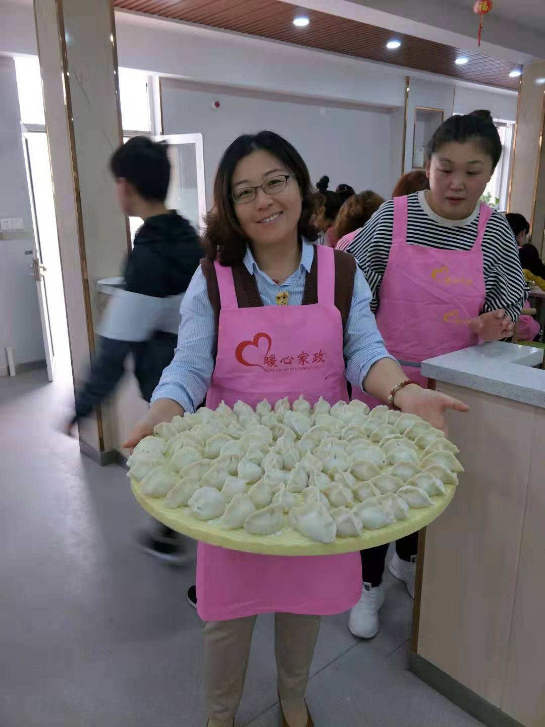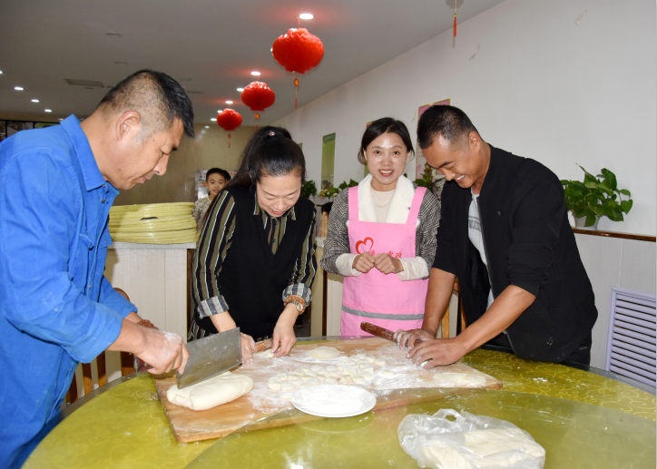 有些大姐还带了自己家的孩子一起参加这次公益活动,以身作则,以实际行动教育孩子们尊老爱老。孩子们也非常活跃,不管是包饺子还是擀皮,都积极参与。