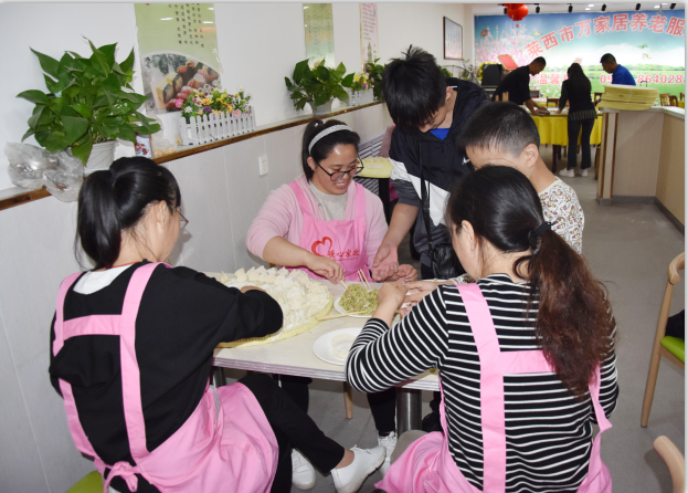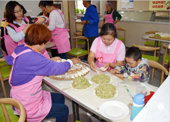 组织并筹备了一个假期,今天早上八点半,大家带着自己准备的莱阳梨、八宝粥、牛奶、麦片,各种水果等,在我们的美女领导葛经理带领下,我们家的众多大姐浩浩荡荡的来到了万家居敬老院,陪老人们聊天,询问老人的身体状况,并为敬老院的老人们包饺子,和他们分享蛋糕,陪老人们度过一个充实的重阳节。